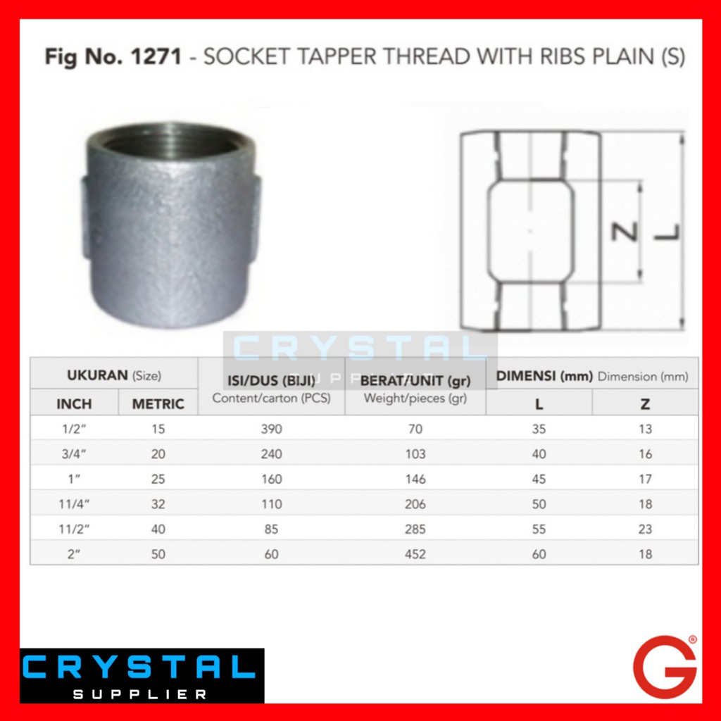 Vlok Sok Galvanis Besi 1 1 2 X 3 4 Inch G Brand Drat Bspt Socket Sock 1 5 X 0 75 Inch Di Lapak Crystal Supplier Bukalapak